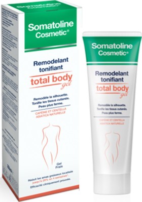 Το Somatoline Cosmetic Remodelling Toning Total Body Gel είναι ένα απαλό και λεπτόρευστο gel. Περιέχει εκχύλισμα καφεϊνης και centella asiatica που δρούνε στην επιφάνεια της επιδερμίδας και ενισχύουν την σμίλευση.