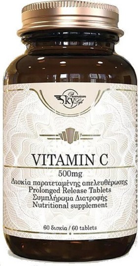 Sky Premium ​Life Vitamin C, δισκία παρατεταμένης αποδέσμευσης που περιέχουν 500 mg ασκορβικού οξέος. Η βασική βιταμίνη σε ένα δισκίο.
